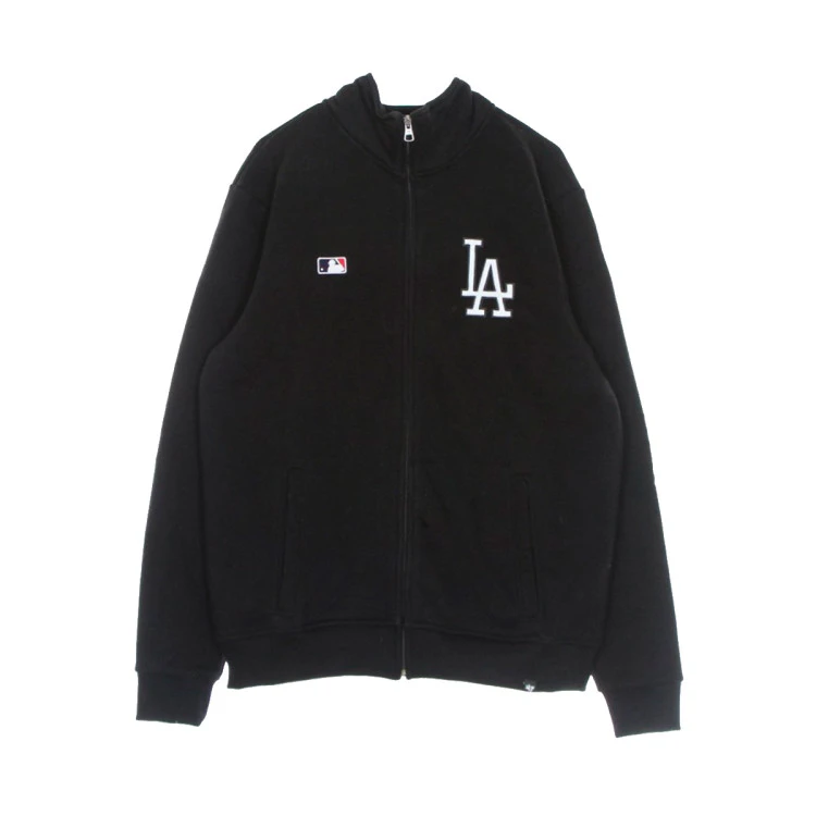 Chaqueta del equipo de béisbol New York Yankees en color negro. Cremallera entera, manga larga, cuello alto y bolsillos laterales. Además lleva el logo de la marca en la parte delantera.
