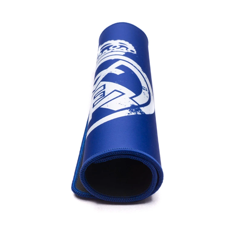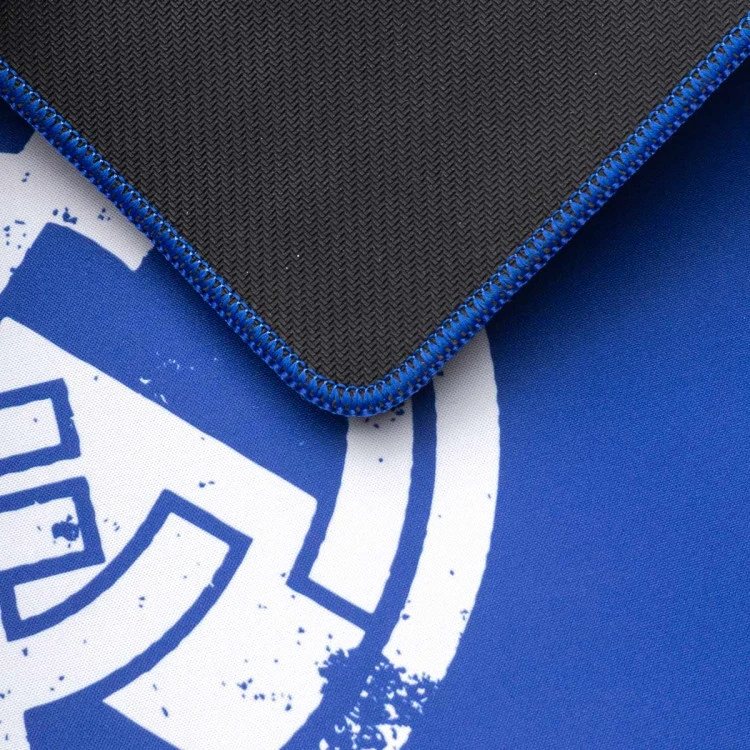 Alfombrilla Gaming en fondo azul con el escudo del Real Madrid. La afición por tu equipo nunca es suficiente llévala al extremo con esto accesorios tan idílico para ti.