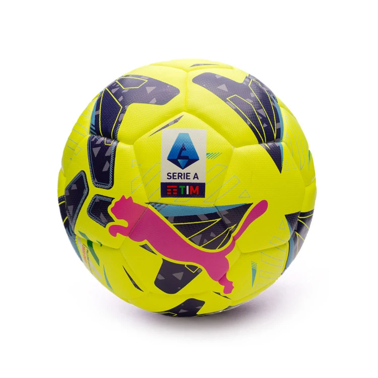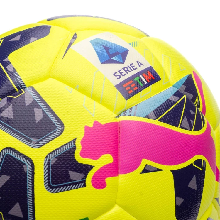 Balón Serie A Orbita Hybrid para la temporada 2022-2023 en color amarillo, marca Puma.