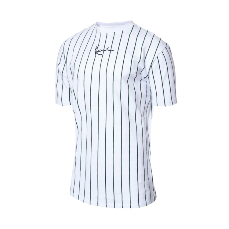 Camiseta Karl Kani blanca de manga corta. Estampado a rallas. Un básico para verano.