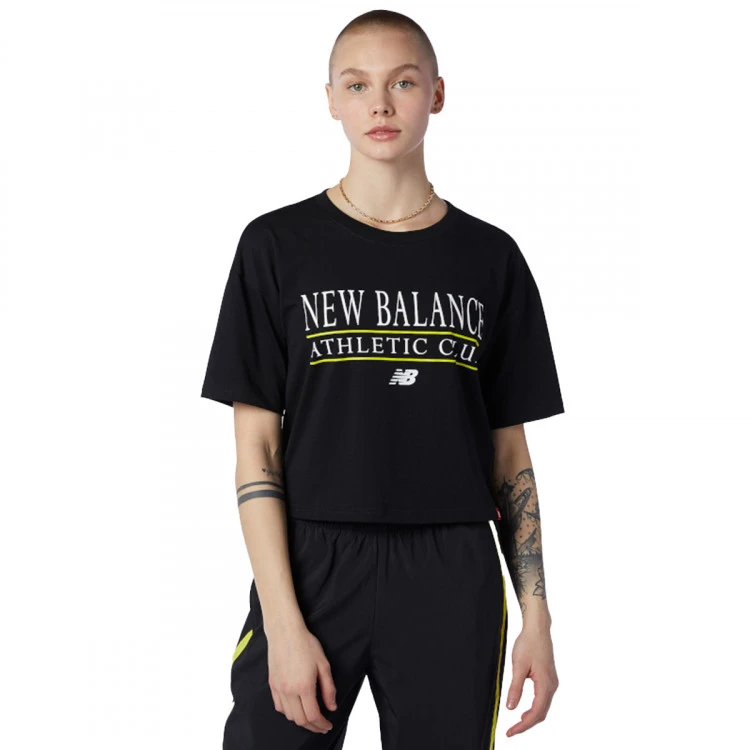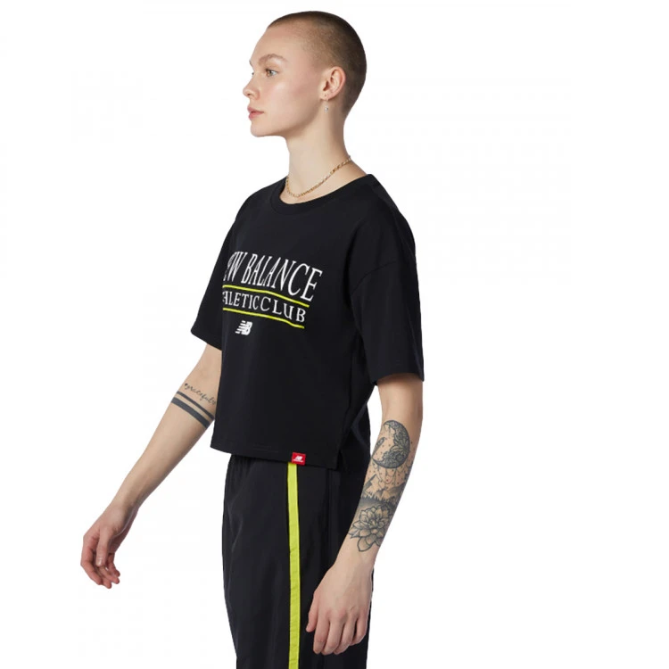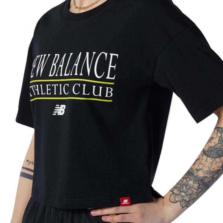 Camiseta de manga corta Essentials Athletic Club boxy 2021-2022 de la marca New Balance para mujer en color Black