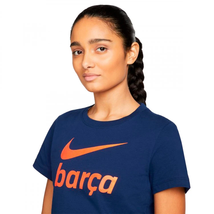 Camiseta de manga corta FC Barcelona Swoosh Club 2021-2022 con logo de Nike en el pecho, en color azul oscuro.