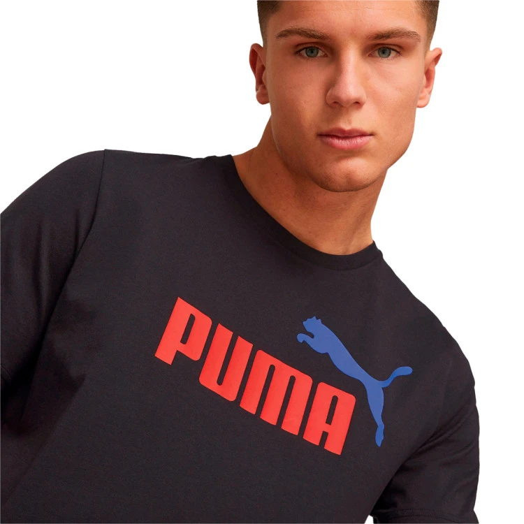 Camiseta manga corta Essentials+ 2 Col Logo en color negro, marca Puma.