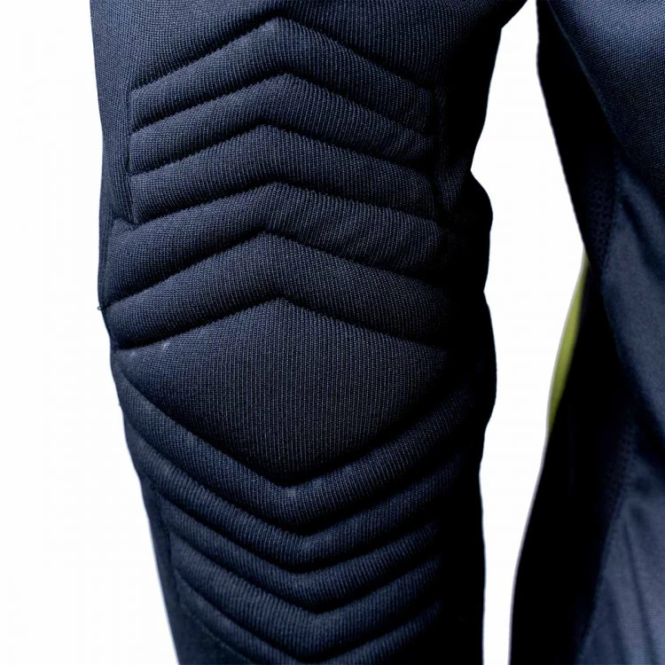 Camiseta de partido para portero de fútbol de manga larga. Protecciones de espuma en los codos y gel antideslizante en los antebrazos para ayudar a embolsar el balón contra el pecho. 100% Poliéster con tecnología ATMOSPHERE para una correcta gestión de la temperatura corporal durante la competición.