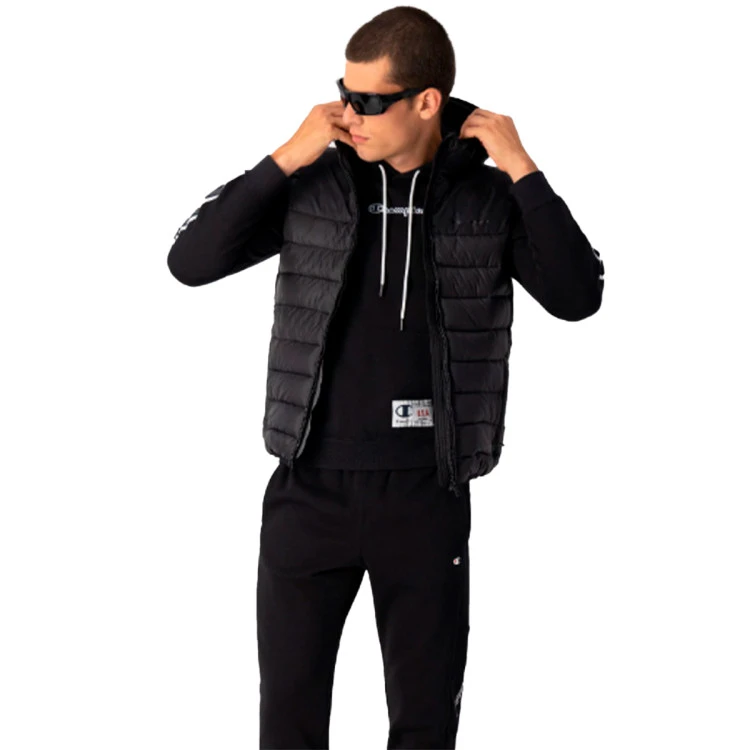 Chaleco Legacy Outdoor Small Logo en color negro, marca Champion.