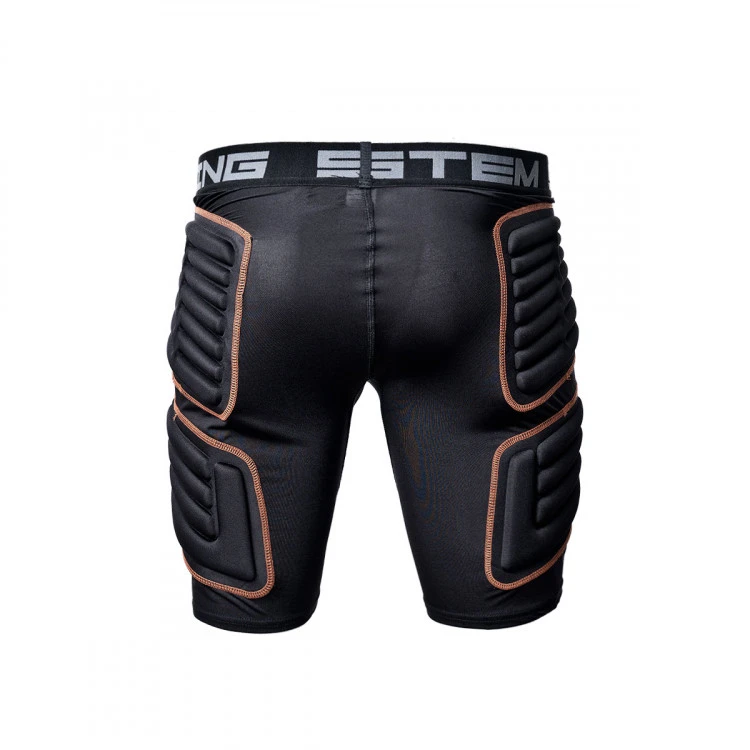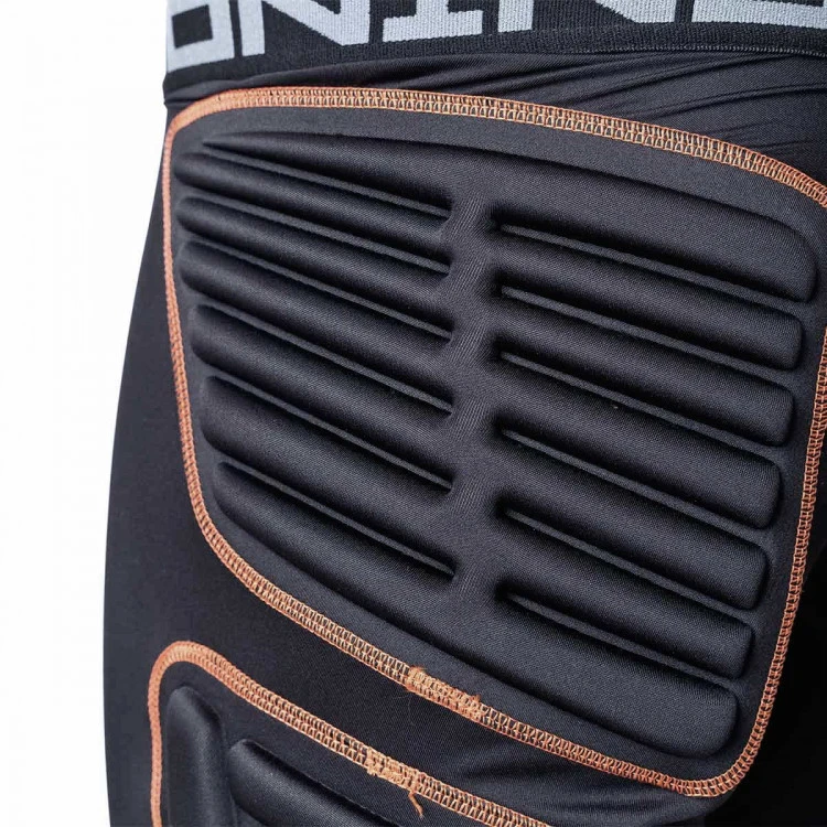 Malla interior corta para porteros de fútbol fabricada en licra y con protecciones EVA PROTECTION en caderas. La goma EVA es uno de los materiales con mejor absorción de impacto del mercado. Mediante una técnica de termomoldeado las protecciones presentan multiples canales de flexión para adaptarse a la anatomía del futbolista.