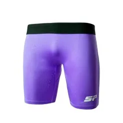 Malla corta primera capa de licra con efecto compresivo, para niño en color morado.