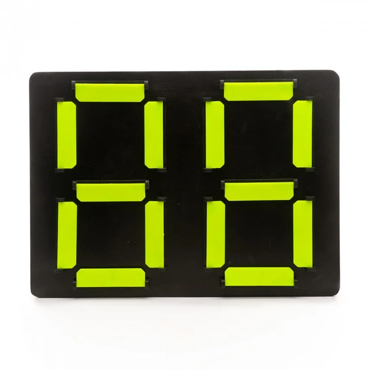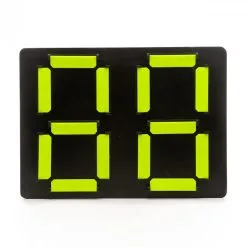 Tabla de sustitución para el delegado o 4º árbitro. Sistema analógico que permite marcar los números del 0 al 99. Color rojo por un lado de la tabla y amarillo flúor por o el otro.