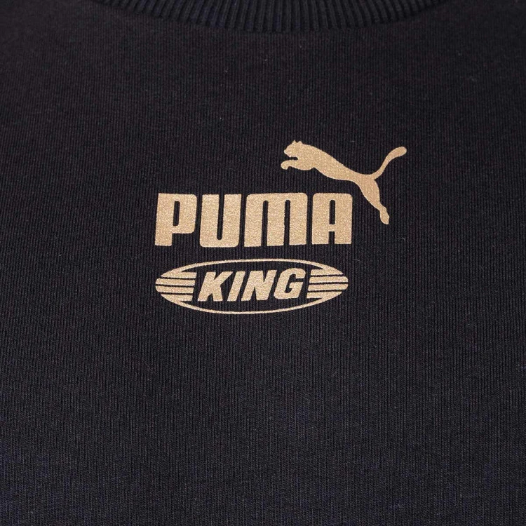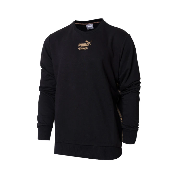 Sudadera Puma King. Creerte un rey nunca fue tan fácil, con esta sudadera negra y los detalles de la marca en dorado, crea un estilo elegante a cualquier look.