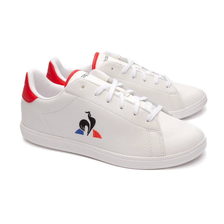 Zapatillas Courtset en cuero blanco. Sneaker deportivo baja en piel genuina con bordado Le Coq Sportif. Cuenta con el logotipo de la marca en la lengüeta y en el talón. Cordones planos. Suela exterior de caucho que hace tener una pisada confortable.
